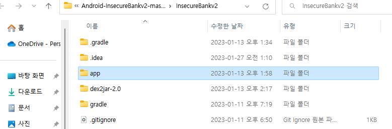 변조된 파일 위치 : D:\Android-InsecureBankv2-master\InsecureBankv2\app\app-release\dist