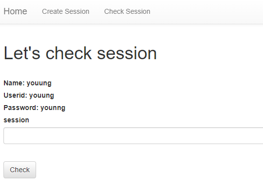 생성한 세션을 Check Session에 넣어본다.