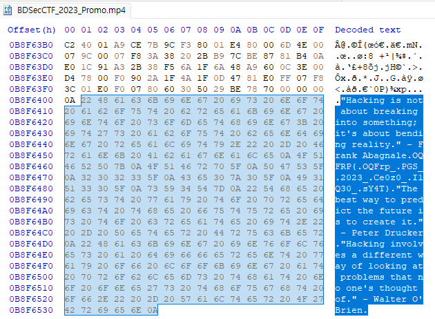 영상을 틀어보면 BDSec CTF 2023 Promo 영상임을 확인 할 수 있었다.